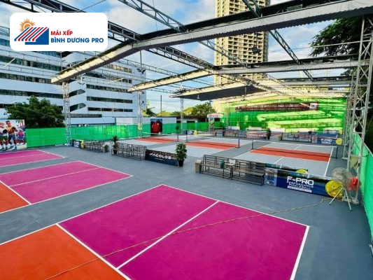 Mái Xếp Bình Dương Pro là đơn vị chuyên tư vấn, thi công mái che sân pickleball theo yêu cầu tại Bình Dương , cam kết mang đến giải pháp tối ưu, phù hợp với nhu cầu và ngân sách của
